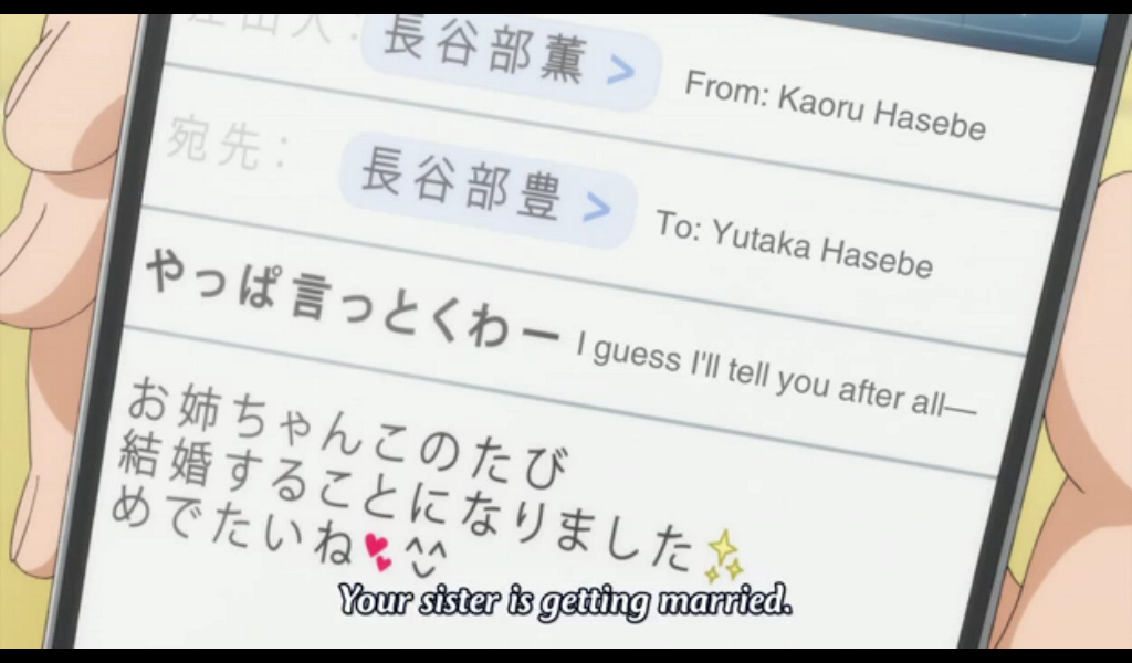 But luckily, it turns out that Hasebe’s sister is the one getting married…